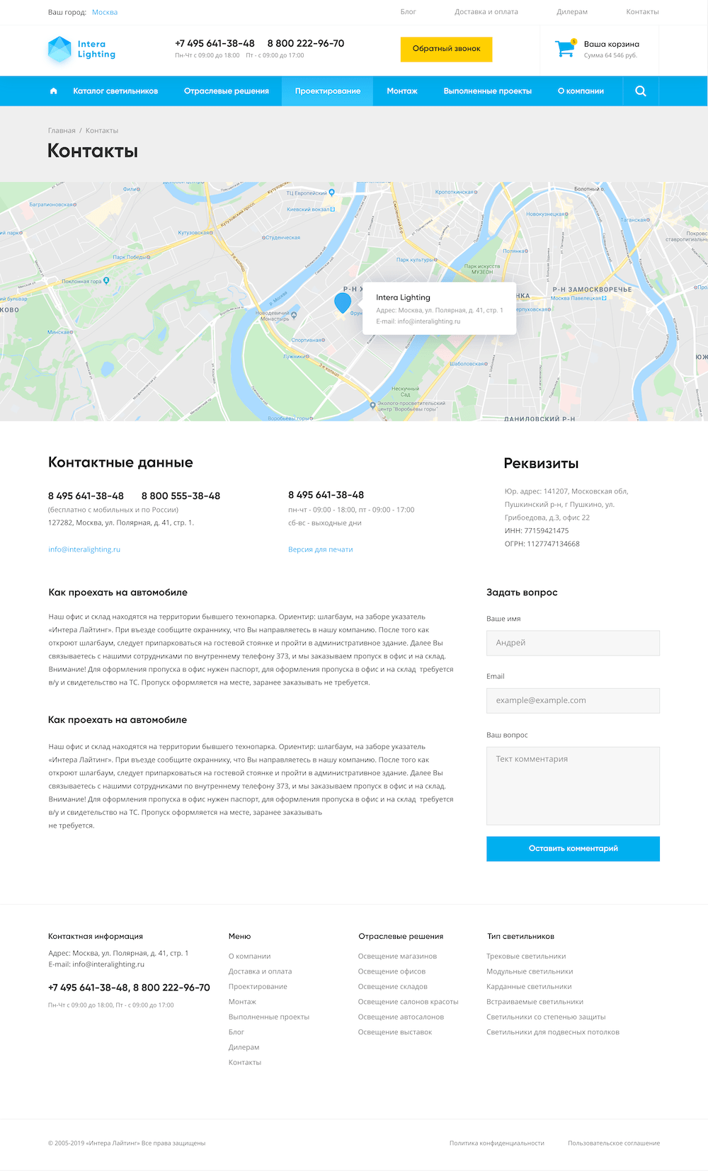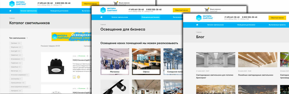 - Блог - для тех кто ищет информацию (как выбрать светильник, примеры освещения офиса и т.д.)