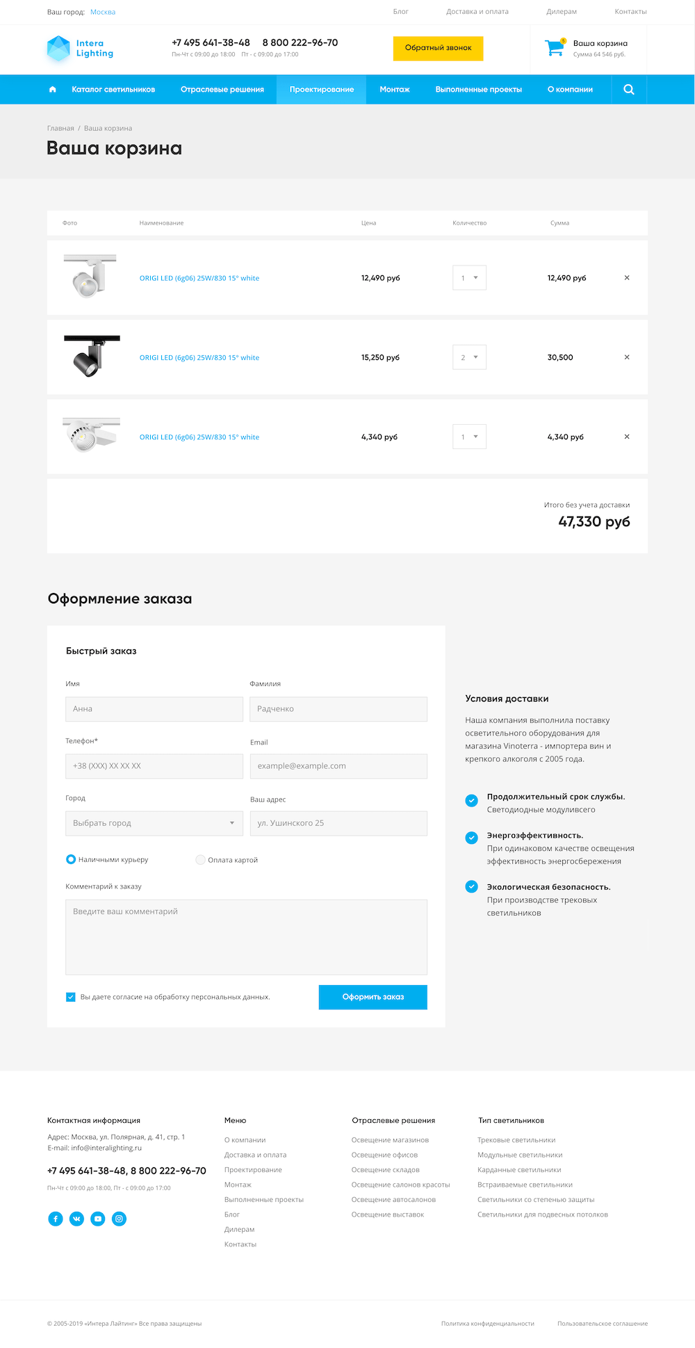 Второй нюанс - многие покупатели знают что им нужно освещение для склада или офиса определенной площади, но понятия не имеют что им для этого нужно купить. Заказчик оказывал услуги по проектирования освещения, подбору оборудования, но узнать об этом посетители сайта могли только связавшись с менеджером. На сайте информация конечно была, но находили ее далеко не все. Так мы определили задачу №2 - создание раздела услуг.