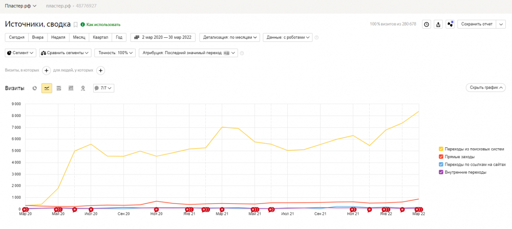 Мы тщательно подошли к работе, из-за чего немного затянули процесс. Но так получилось быстрее достичь нужного результата. Всего за 3 месяца мы вытащили проект с нулевых позиций до попадания в ТОП по всем запросам. В нише штукатурки стен и стяжки полов мы обошли даже Леруа Мерлен, который трудно потеснить с первых позиций выдачи.